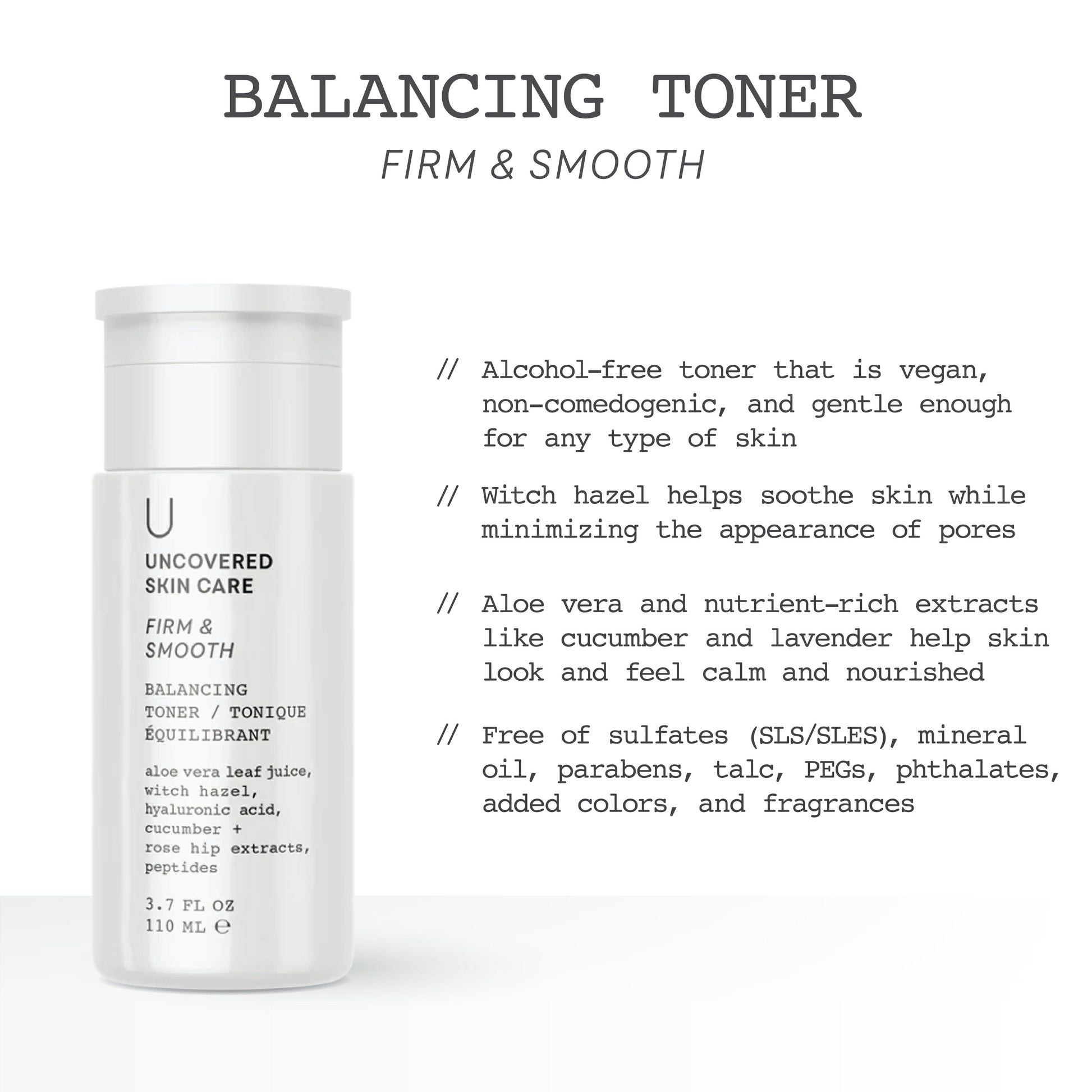 Hydrate, exfoliate, and more with our Balancing Toner. Quick to absorb, this enriched formula not only helps balance skin’s pH level post-cleanse, it also helps other products penetrate deeper into skin. Witch hazel helps skin feel calmer and pores appear smaller, while additional ingredients help prep skin for the next steps in your daily routine. Dispense formula onto a cotton pad, pat over your face and neck, and allow it to absorb.