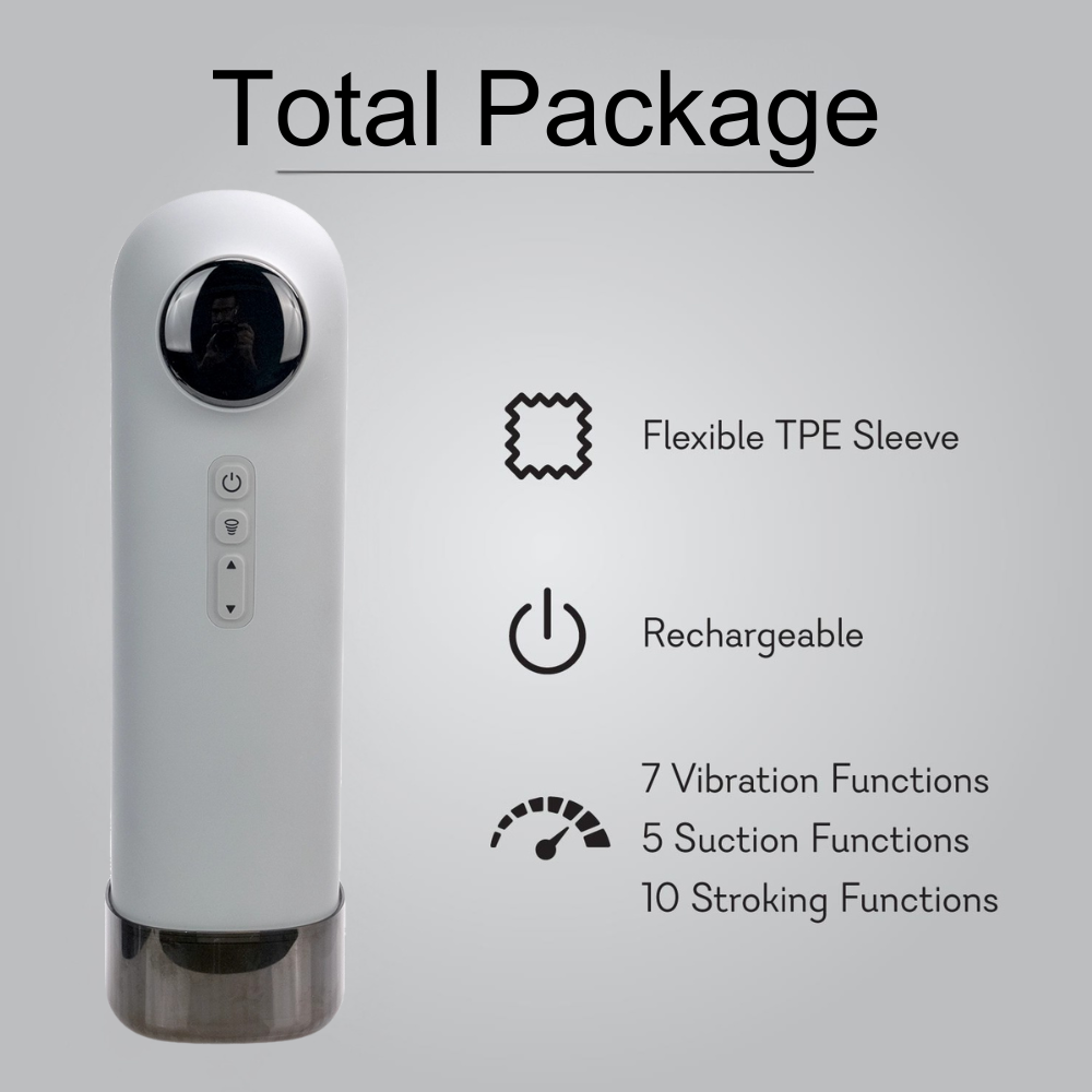 Total Package is here to meet your every need. Vibration? Check. Warming? Check. Stroking? Suction? Check and CHECK.